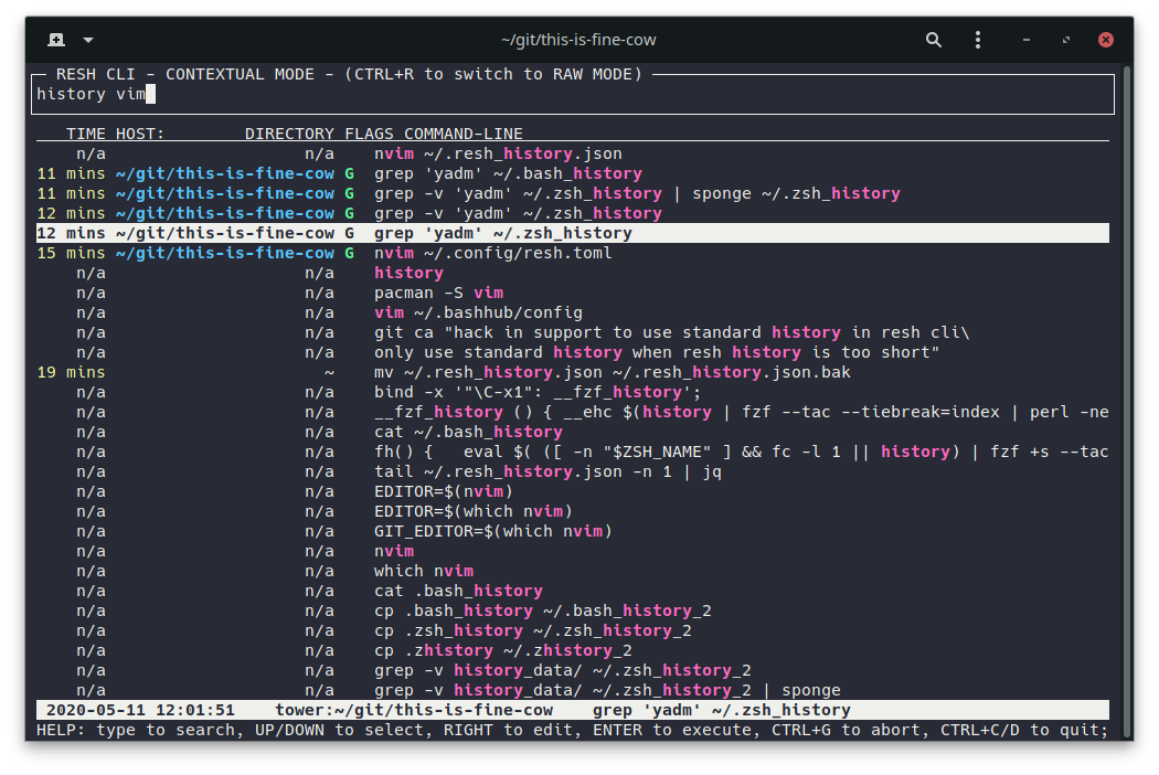 Rich Enhanced Shell History - Contextual shell history for zsh and bash
